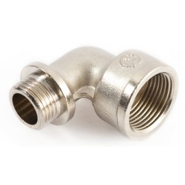Угловой никелированный латунный фитинг GF 2700.24.N, используется для создания разьемных соединений на трубопроводах. Резьба внутренняя/наружная.