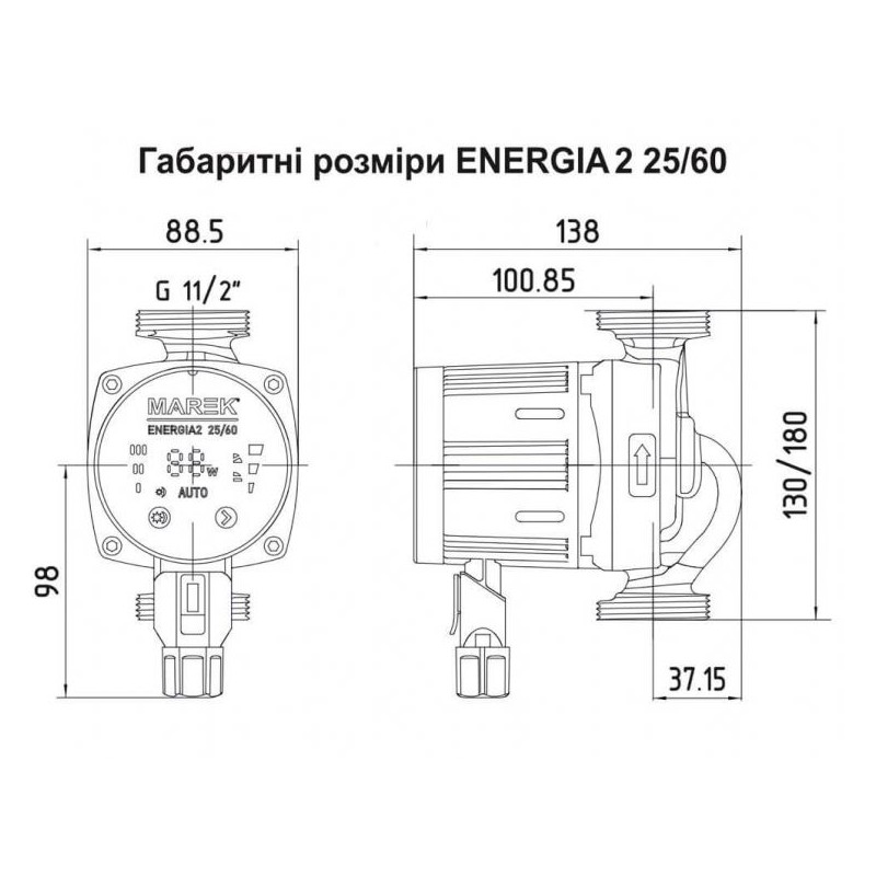 Marek Energia 2 - циркуляционный энергоэффективный частотный насос с мокрым ротором, используется для циркуляции жидкостей в системах отопления и кондиционированния. Energia 2 имеет низкий расход энергии, что соответствует класу энергосбережения А. Поставляется в двух размерах: 25/6 130 мм и 25/6 180 мм. Насос укомплектован гайками и специальным штекером для соединения с электросетью.