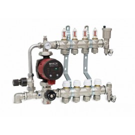 Комплект для теплого пола Marek - готовое решение для подключения теплого пола. Состоит из: колллекторная группа с расходомерами и евроконусами, смесительный узел с термостатическим клапаном и байпасом, циркуляционный энергоэффективный насос ENERGIA2 25/60 130 мм, концевики с ручным и автоматическим воздухоотводчиком. Комплекты доступны от 3 до 8 выходов.